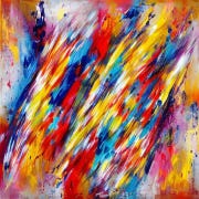 He then explains that each color is a wave disposed in a frequency, traversing through space at the speed of light, reaching our eyes and brains, and translated into what we perceive as red or blue.